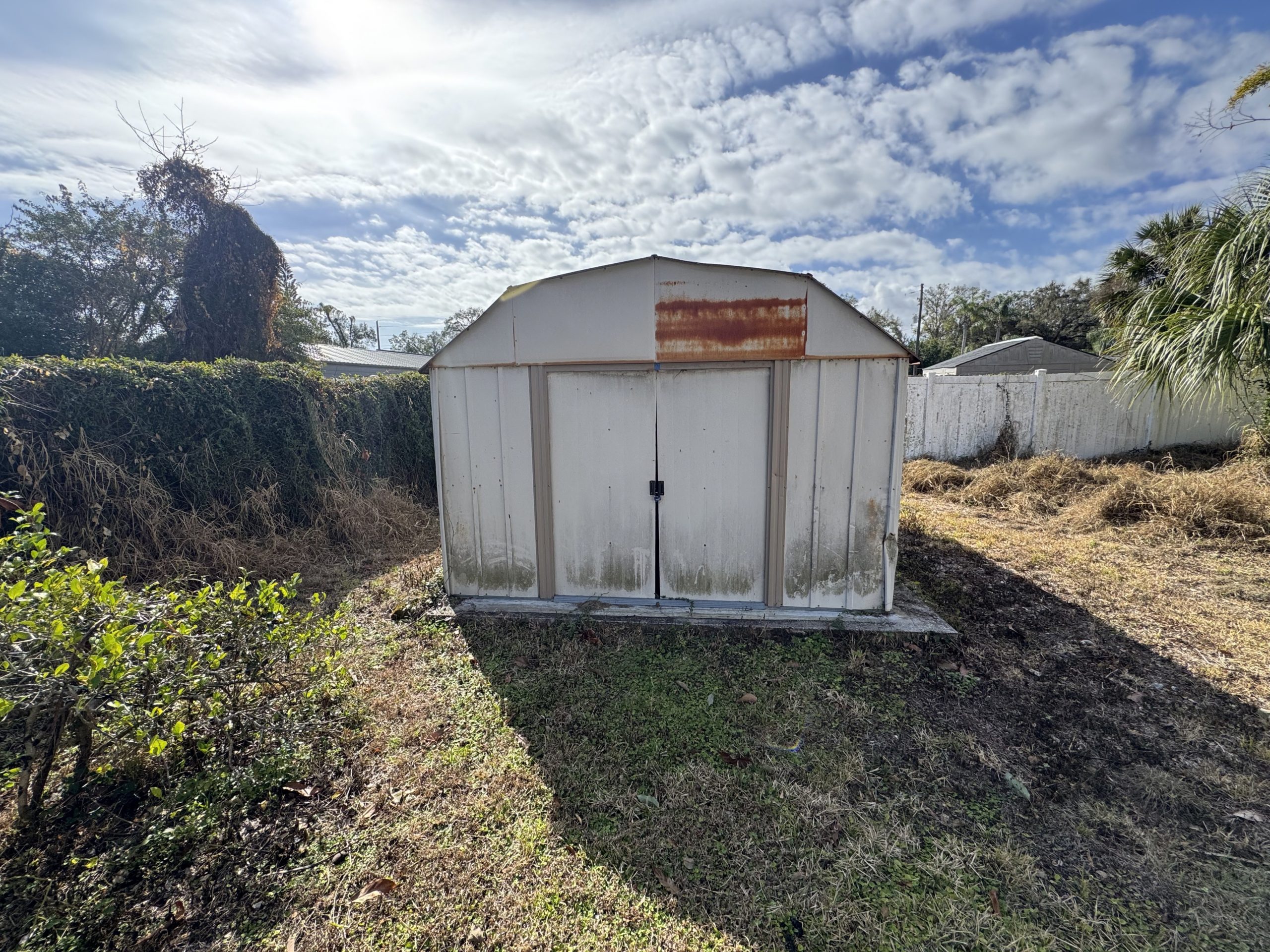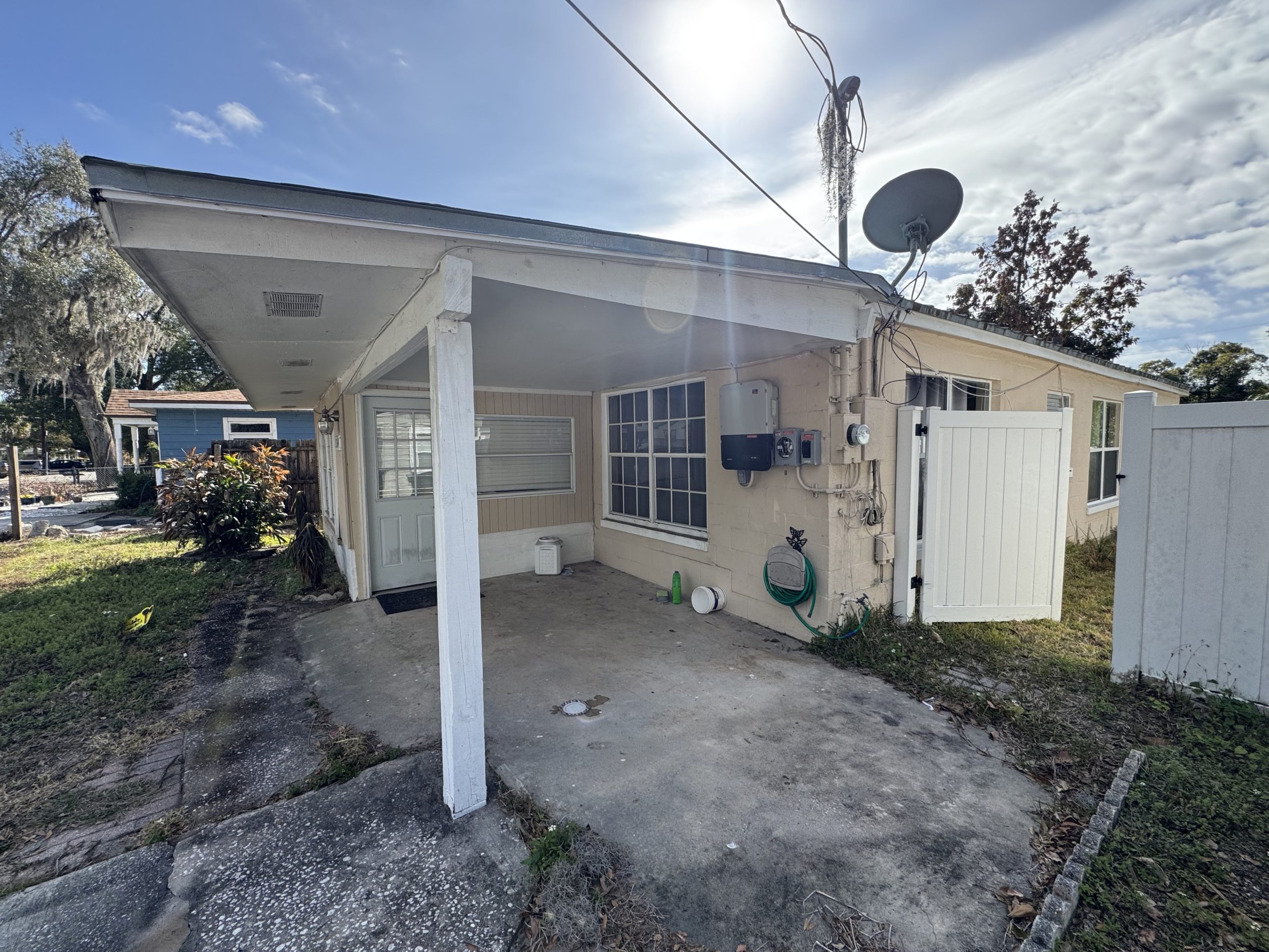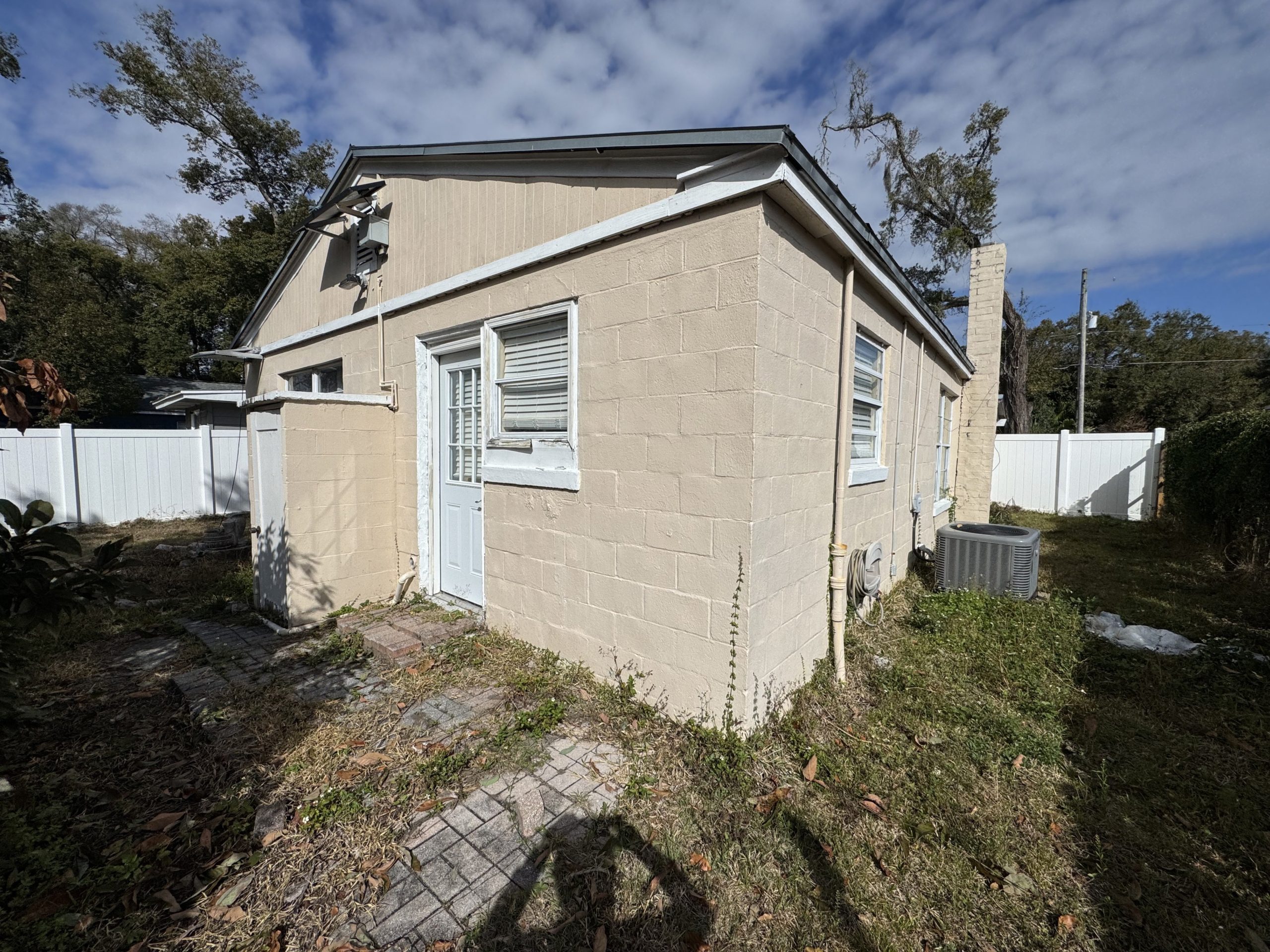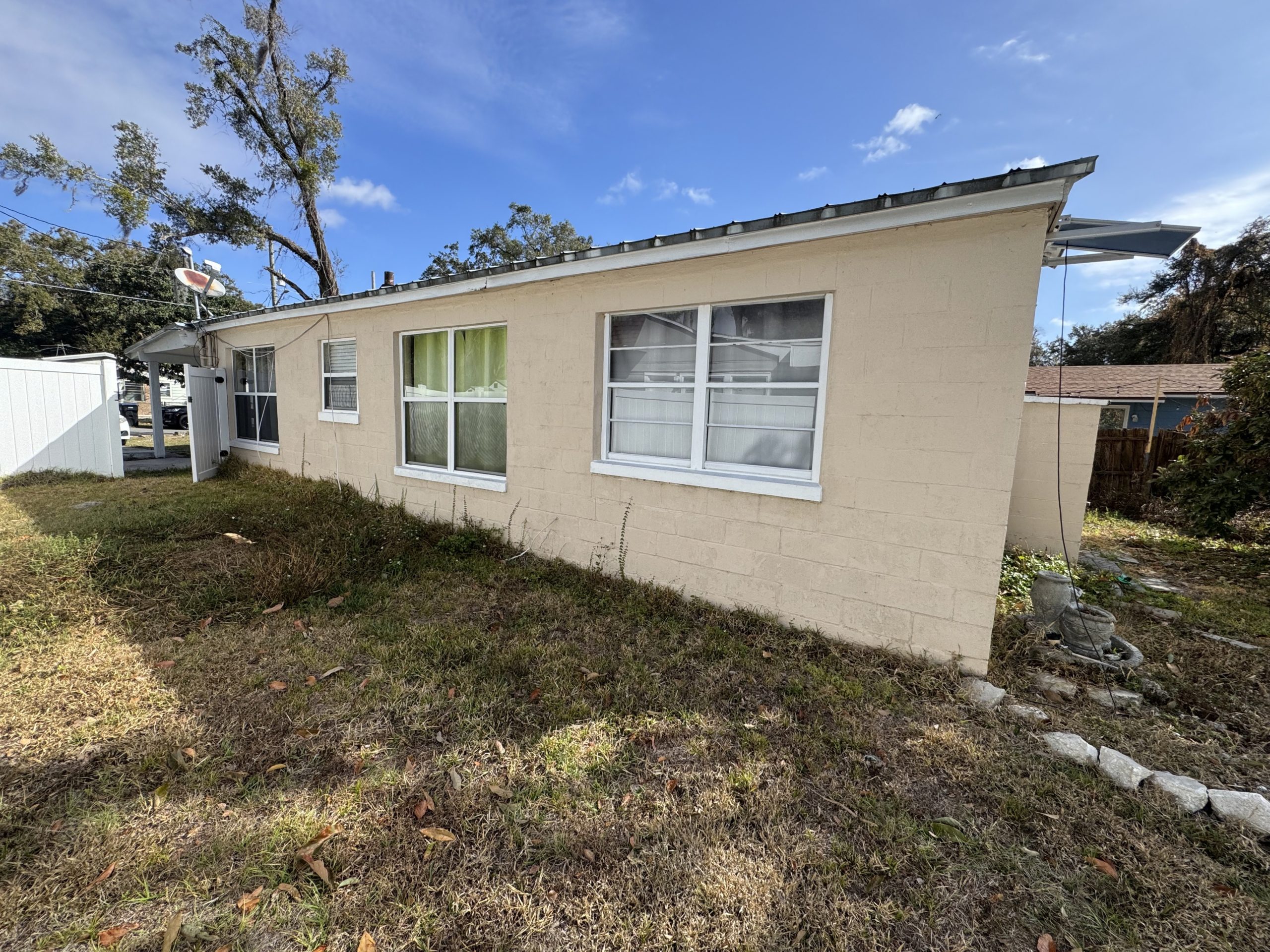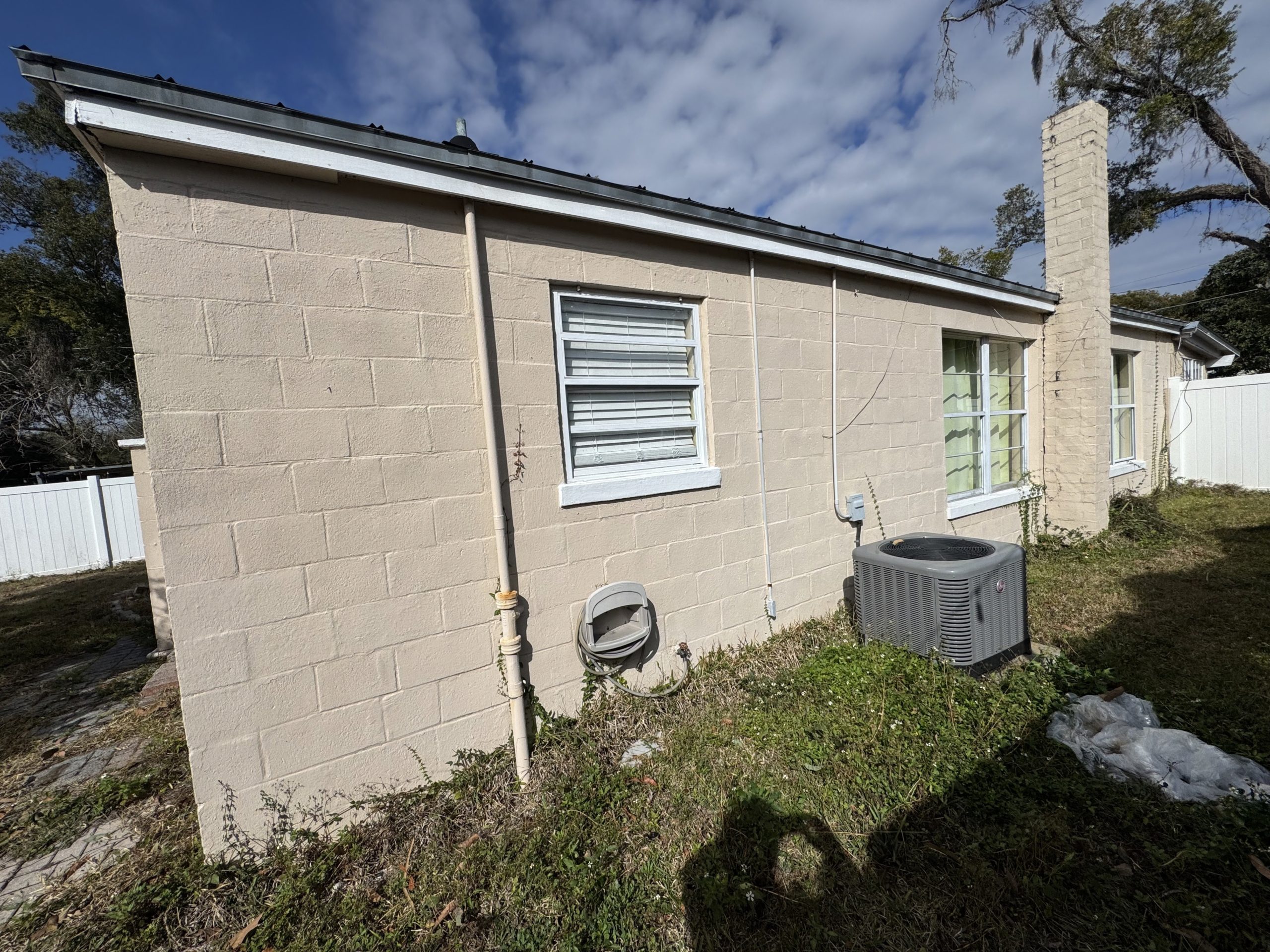 The home is concrete block construction with a metal roof (no known issues) and an HVAC system approximately 5 years old per seller. The property will require a full interior rehab to reach top market value. Overall structure appears serviceable, supporting a moderate renovation strategy.