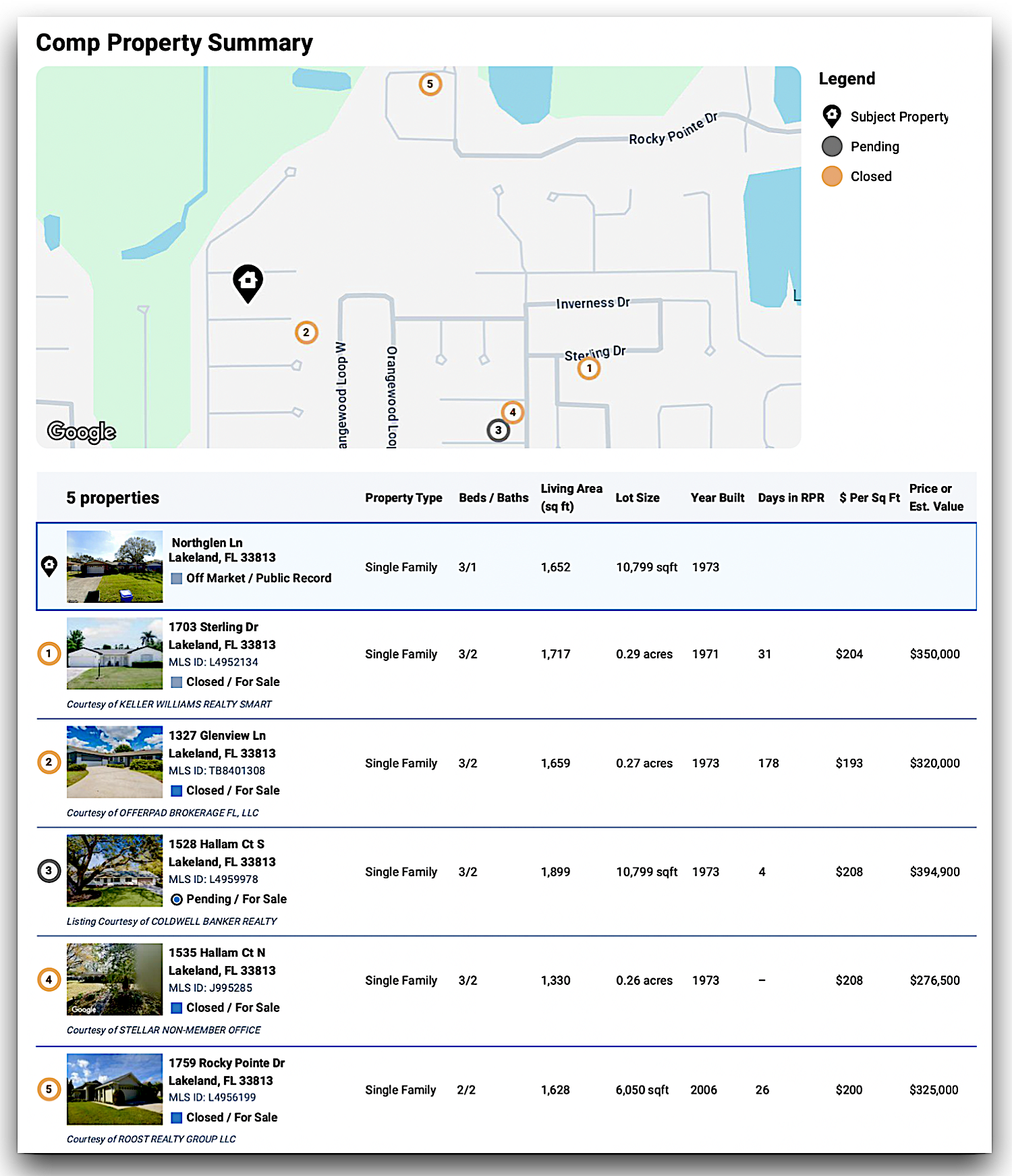📊 Comparable Properties – South Lakeland, FL